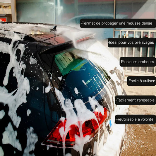 Le pulvérisateur mousse est idéal pour les petits véhicules ou les zones difficiles d’accès. Il est également très pratique pour les usages ponctuels ou en cas de faible encrassement. Compact et abordable, il constitue une option populaire pour les amateurs qui souhaitent entretenir leur voiture sans se ruiner.