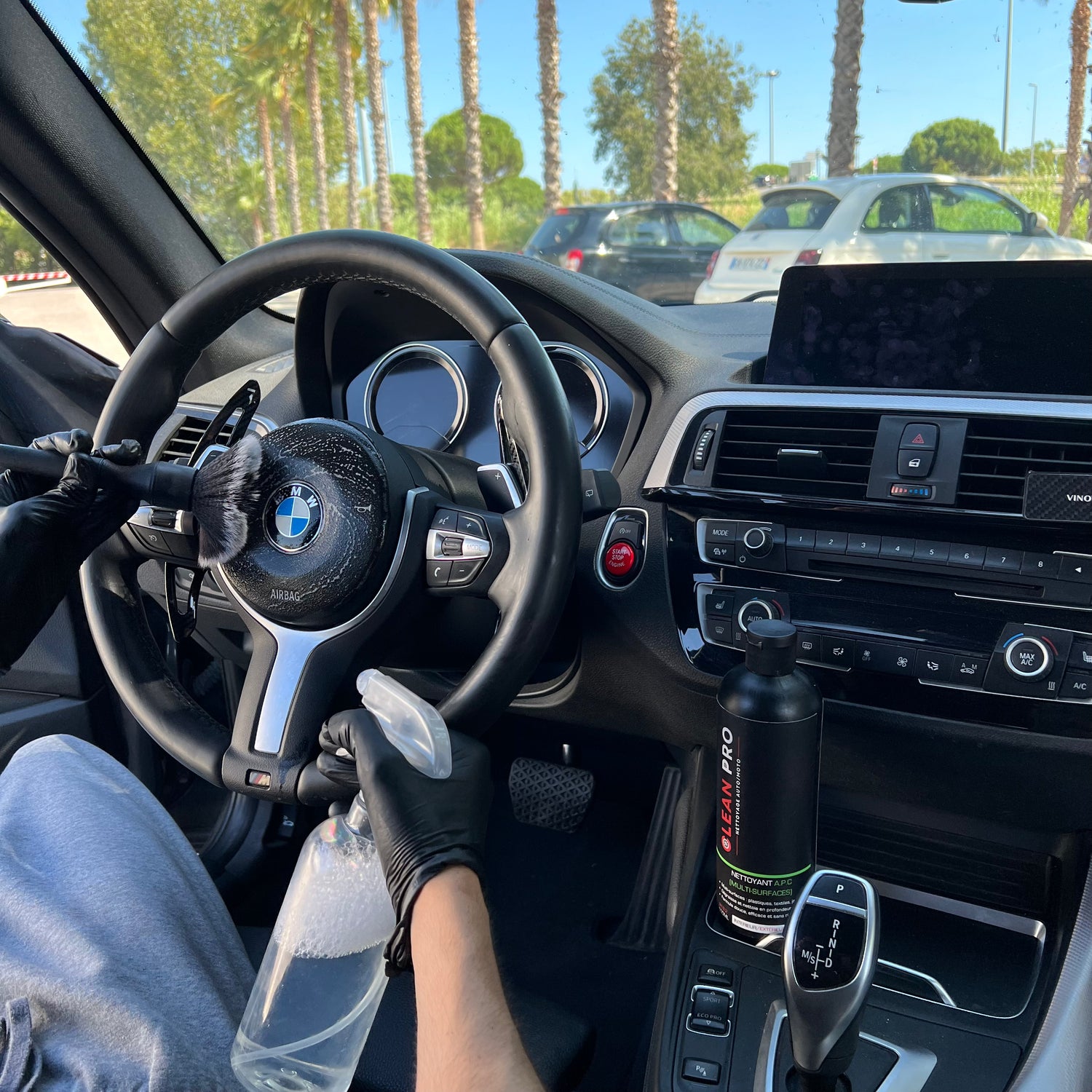 Pas nécessairement. Pour les surfaces intérieures (plastiques, tableaux de bord, cuir...), il suffit de pulvériser, frotter avec une microfibre, puis essuyer. Un rinçage est recommandé uniquement pour les zones très exposées ou en extérieur (passages de roue, compartiment moteur…).